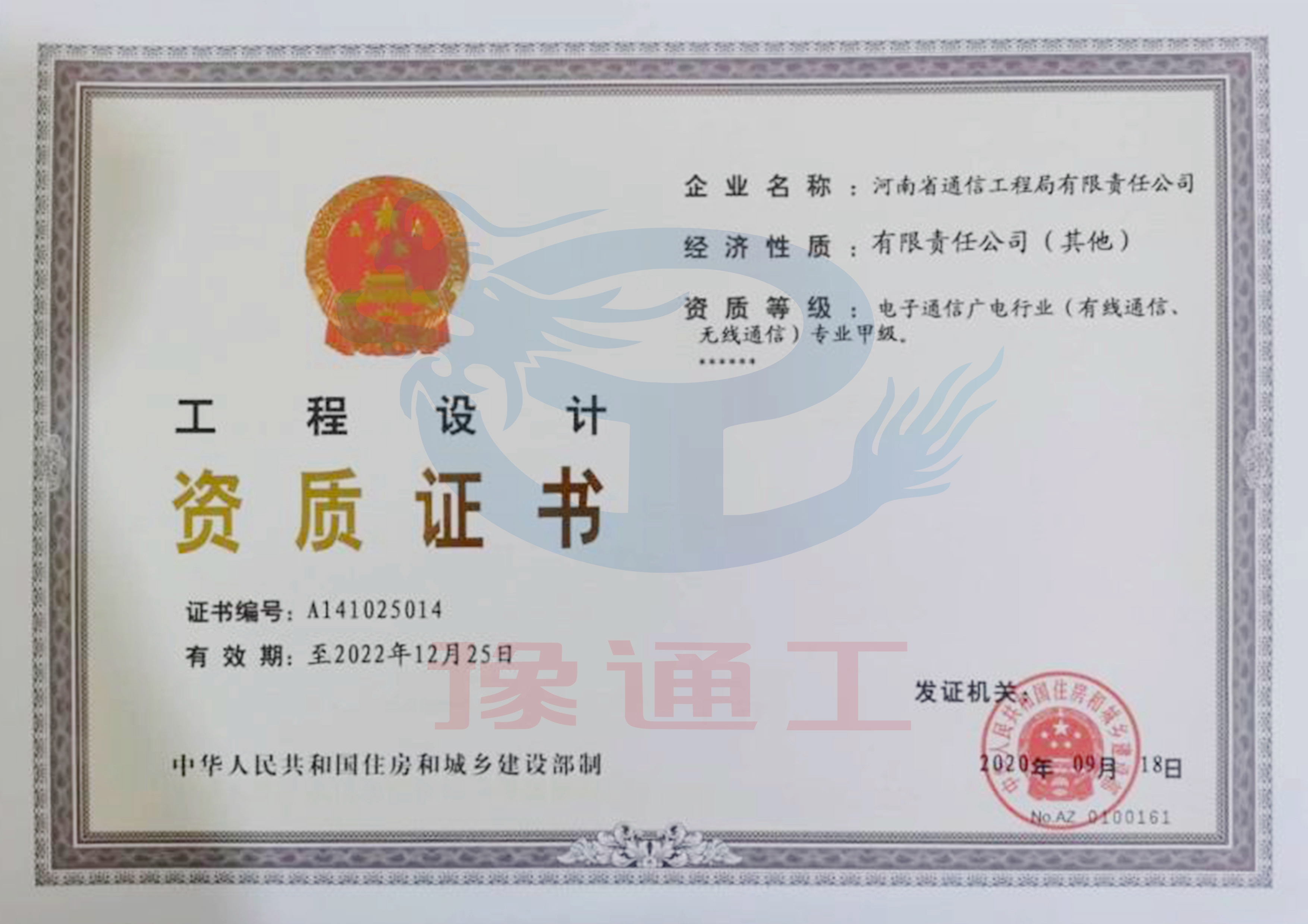 電子通信廣電行業(有線通信、無線通信)專業設計甲級