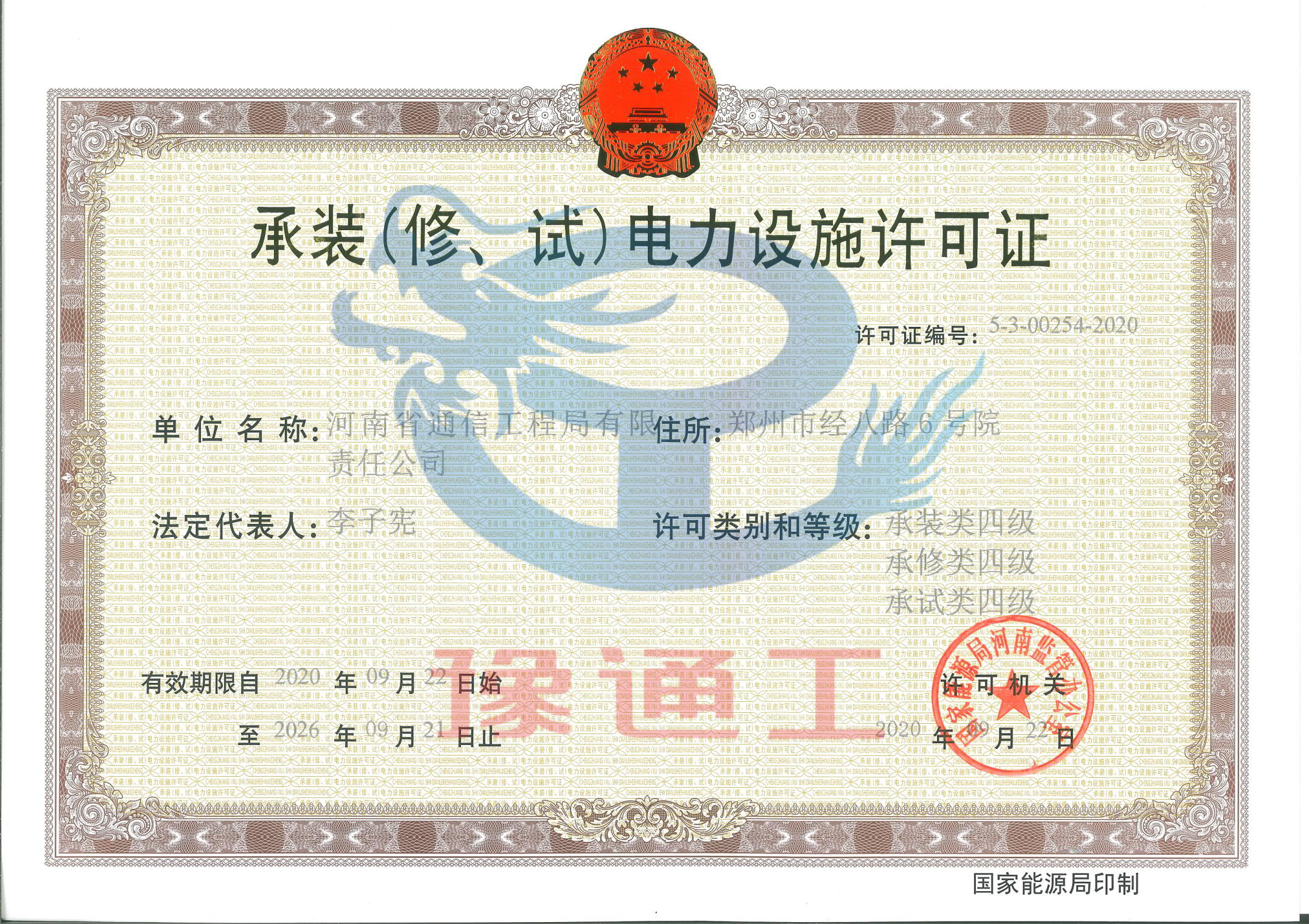 電子與智能化、建筑裝修裝飾、消防設施工程專業承包壹級;鋼結構工程專業承包貳級;建筑工程、電力工程、機電工程、城市及道路照明工程專業施工總承包叁級;施工勞務不分等級。